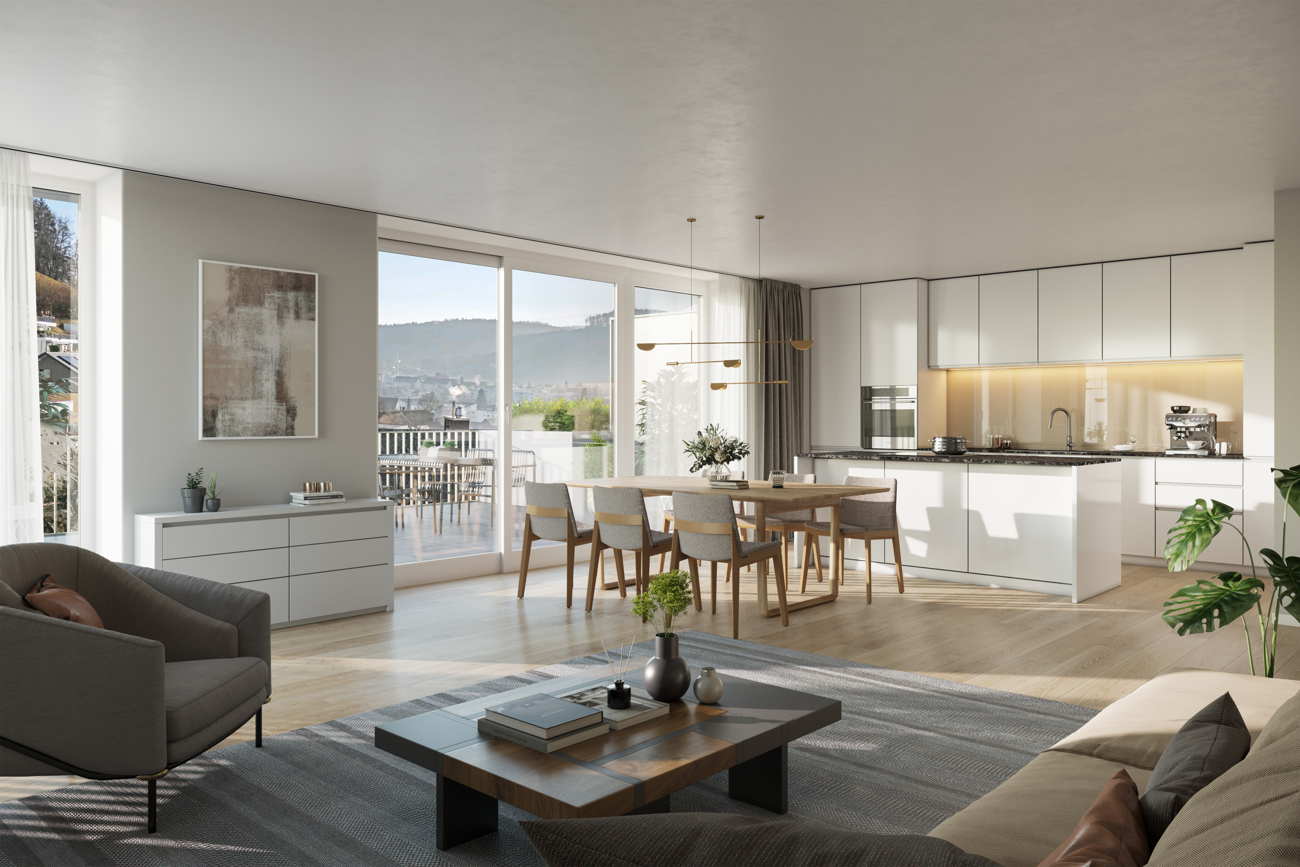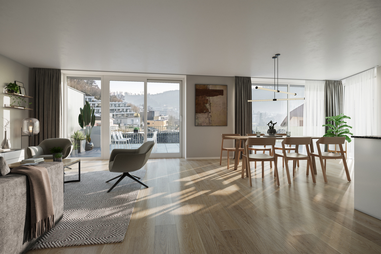 - Ein Wohntraum mit 5 ½ Zimmern und einer Wohnfläche von rund 173 m² sowie einer Terrasse von 83 m²