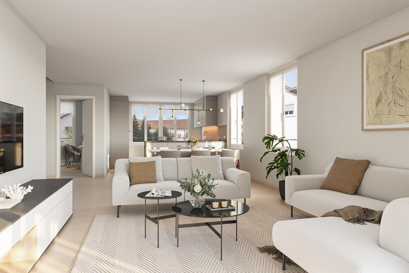 - An zentraler Lage mitten im Dorfzentrum entstehen an der Dorfstrasse 13 neun Mieteinheiten von hoher Bauqualität